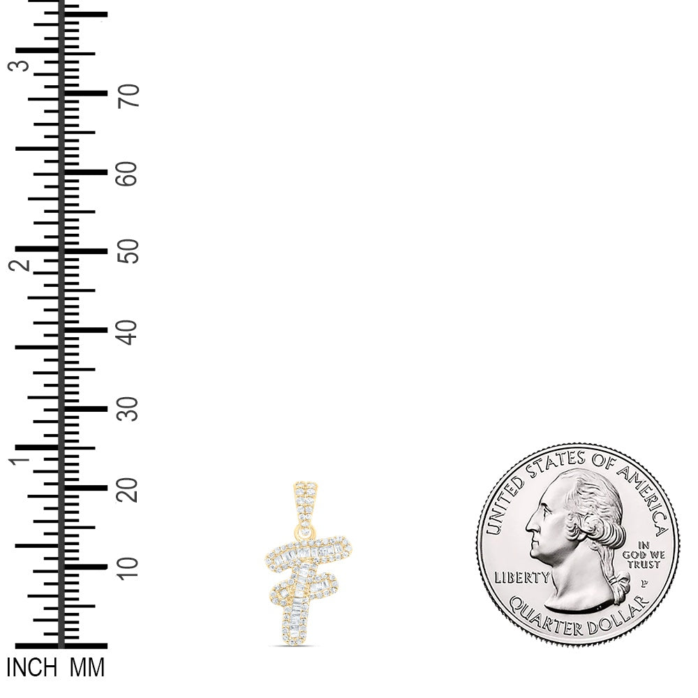 0.3 Ctw Natural Diamond Baguette Hiphop Initial Letter F Pendant in 10k Yellow Gold