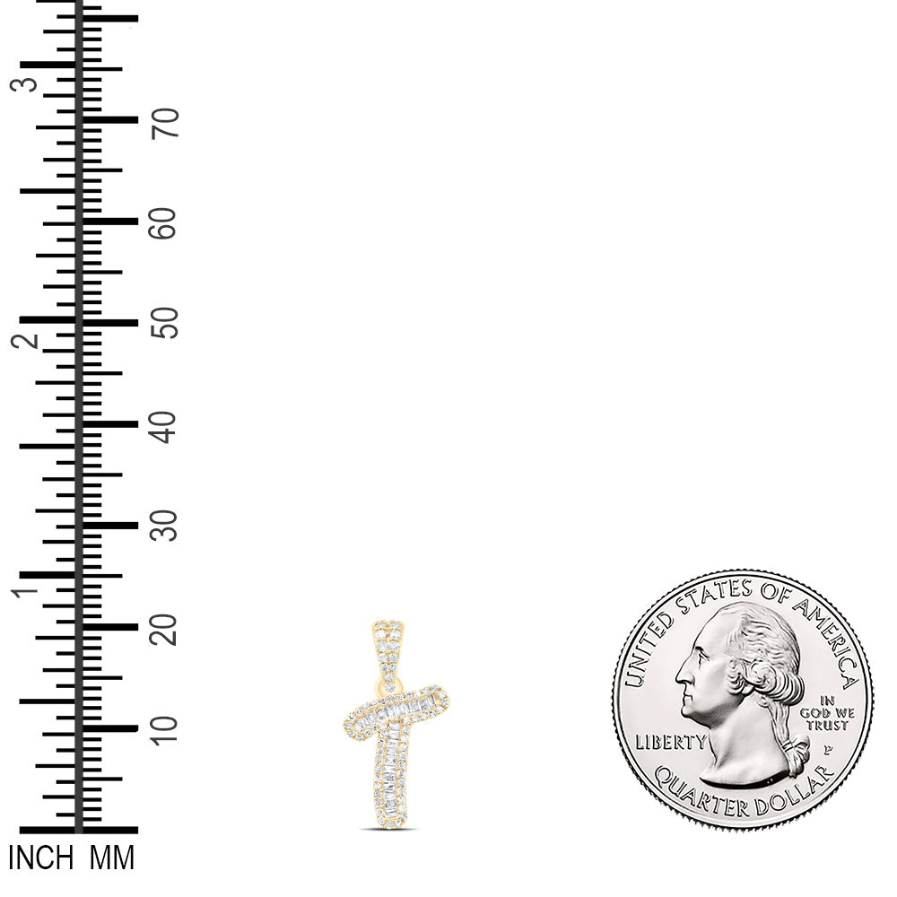 0.27 Ctw Natural Diamond Bagguette Initial Letter T Pendant in 10k Yellow Gold