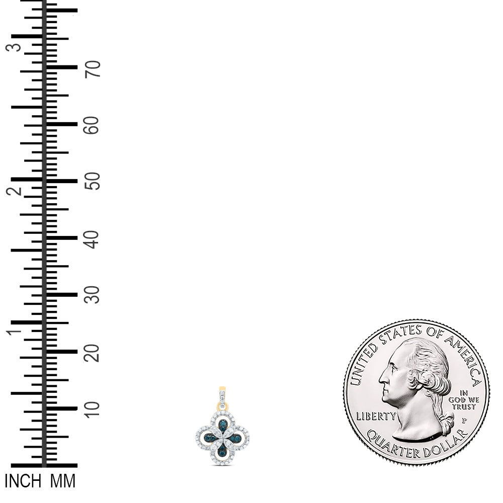 0.25 Ctw Natural Diamond Flower Blue Colored Diamond Pendant in 10k Yellow Gold