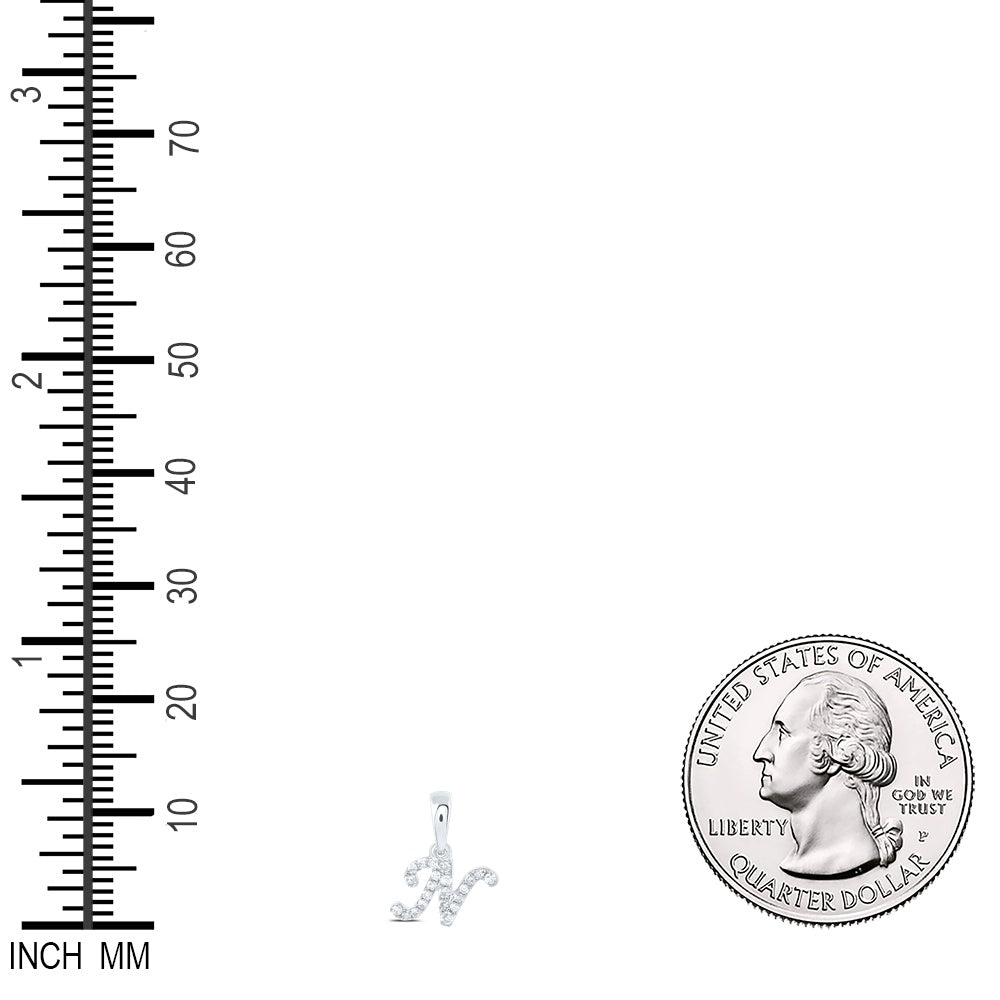0.07 Ctw Natural Diamond Tiny Initial Letter N Pendant in 10k White Gold