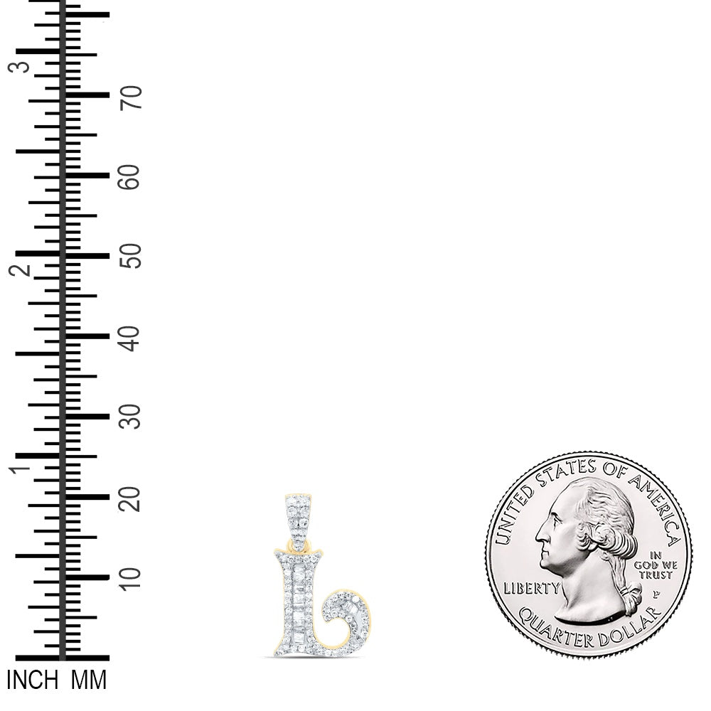 0.28 Ctw Natural Diamond Baguette Hiphop Initial Letter L Pendant in 10k Yellow Gold