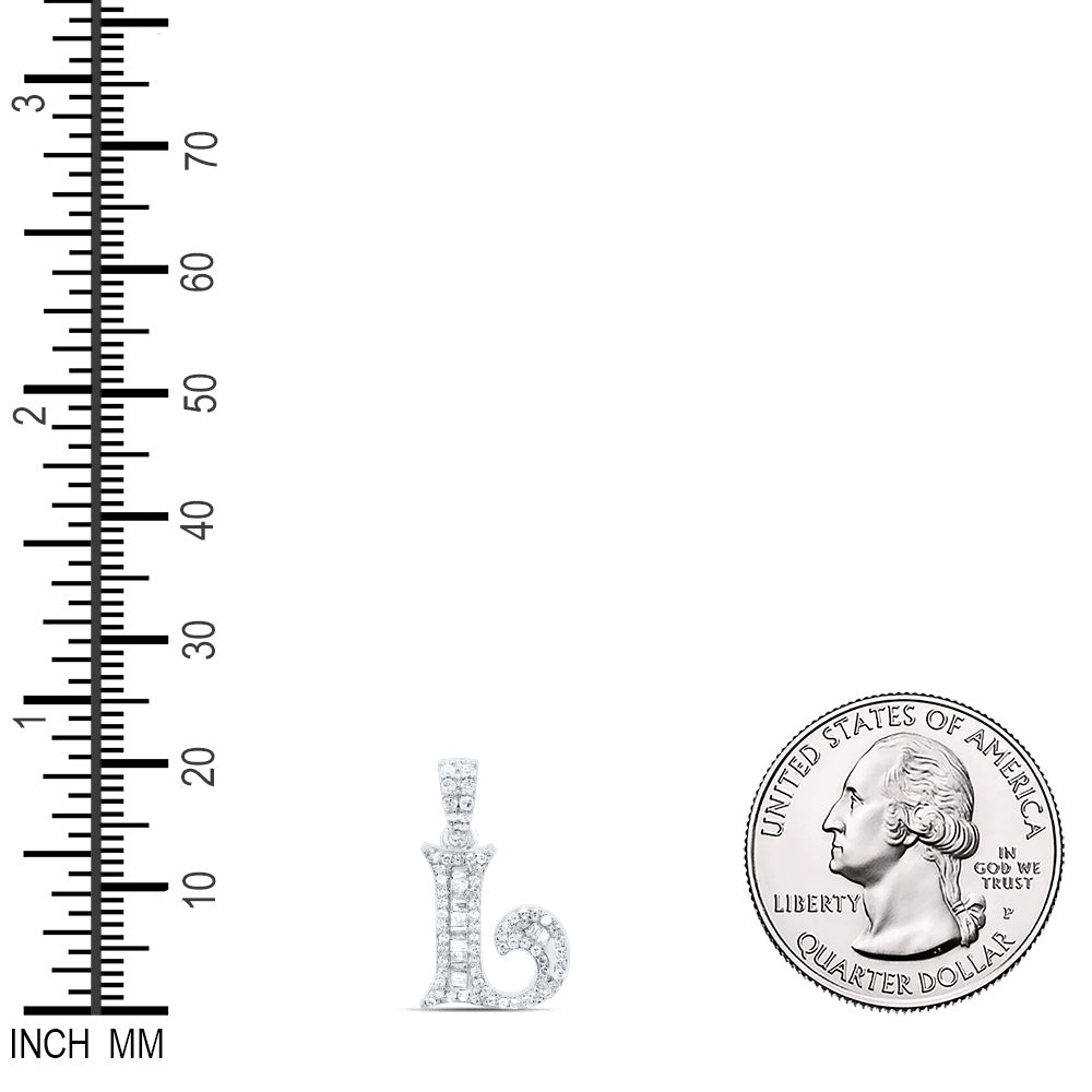 0.28 Ctw Natural Diamond Baguette Hiphop Initial Letter L Pendant in 10k White Gold