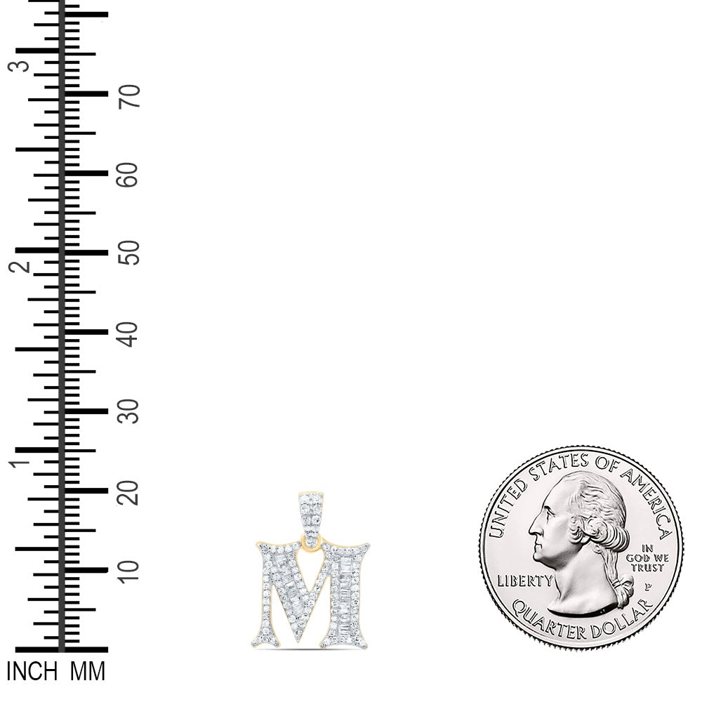 0.35 Ctw Natural Diamond Hiphop Designer Initial Letter M Pendant in 10k Yellow Gold