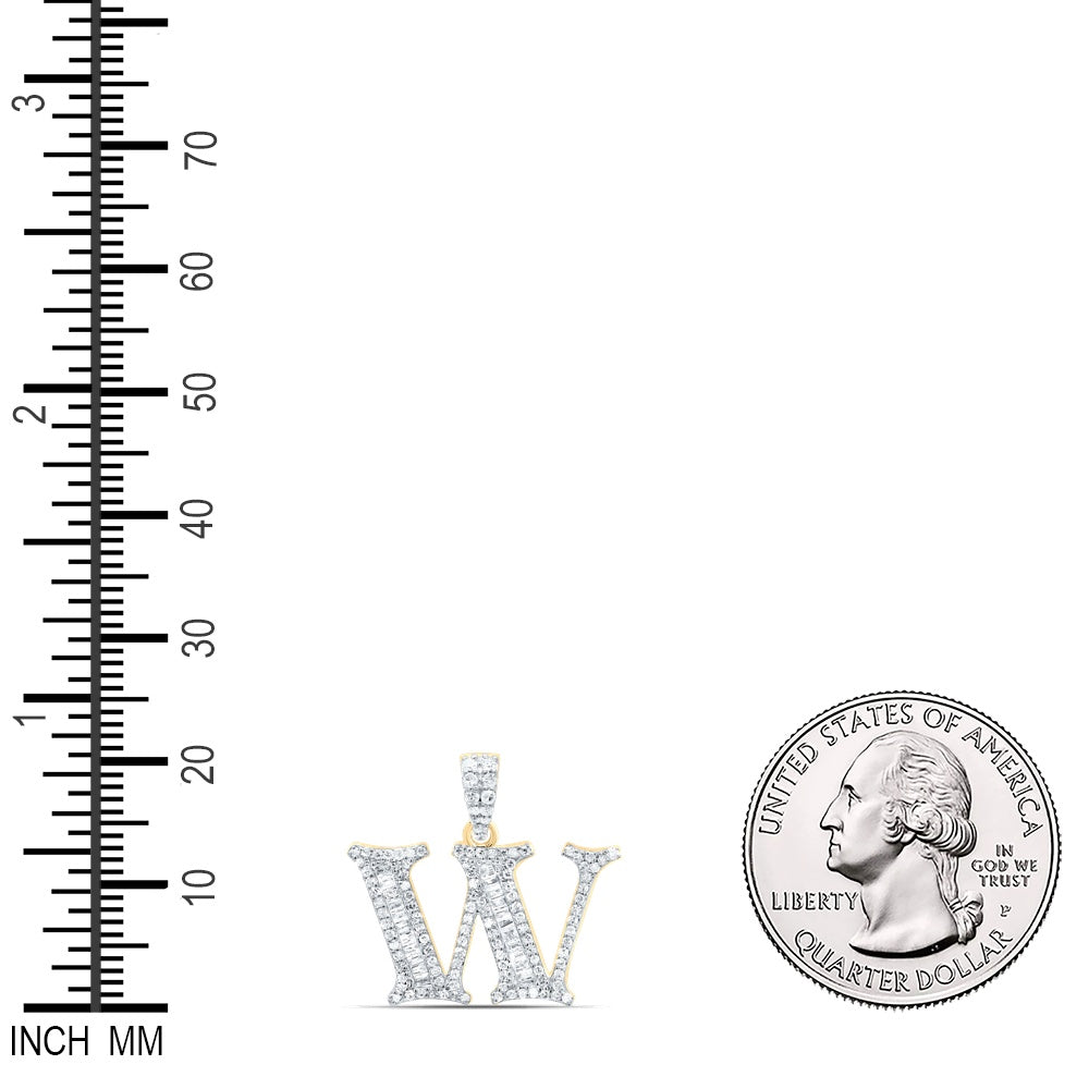 0.41 Ctw Natural Diamond Bagguette Initial Letter W Pendant in 10k Yellow Gold
