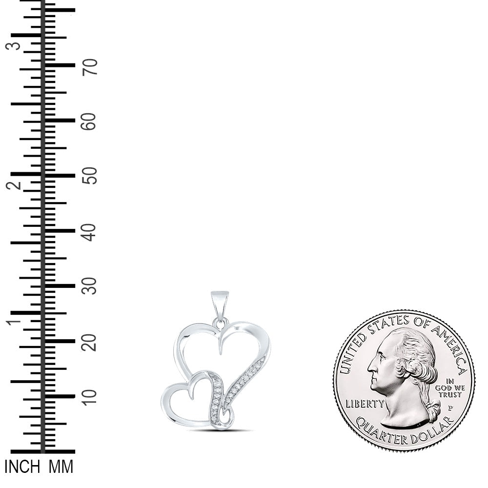 0.1 Ctw Natural Diamond Double Open Heart Pendant in Sterling Silver