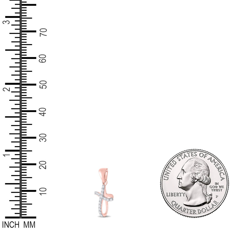 0.1 Ctw Natural Diamond Cut Out Cross Religious Pendant in 10k Rose Gold